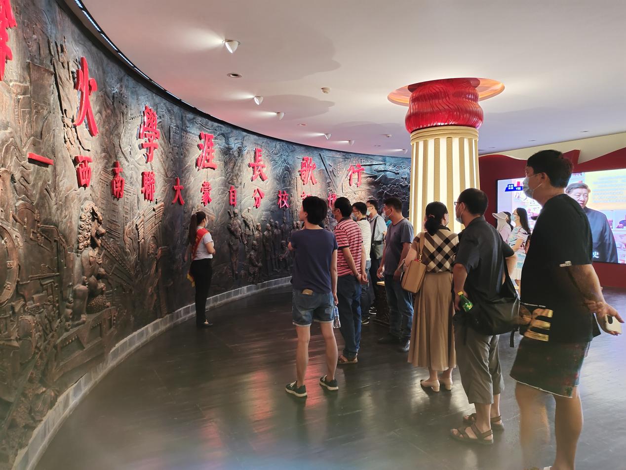 7月12日下午,党员教师们先到查尼皮中共云南一大会址参观学习。党员教师们怀着虔诚和敬仰的心情,一路拾阶而上,沿途了解石碑上关于会址的历史资料,参观中共云南一大会址文化浮雕墙、革命历史图片和实物展、当年举行中共云南一大会议的茅草屋。