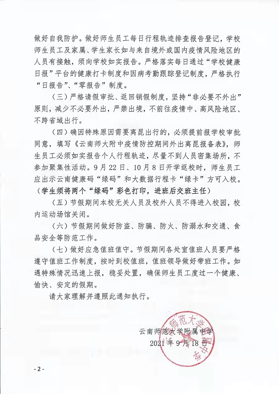 根据当前疫情防控形势和上级部门有关文件、会议精神,结合学校工作实际,为做好2021年中秋、国庆假期学校疫情防控及安全工作,现将有关事项通知如下: