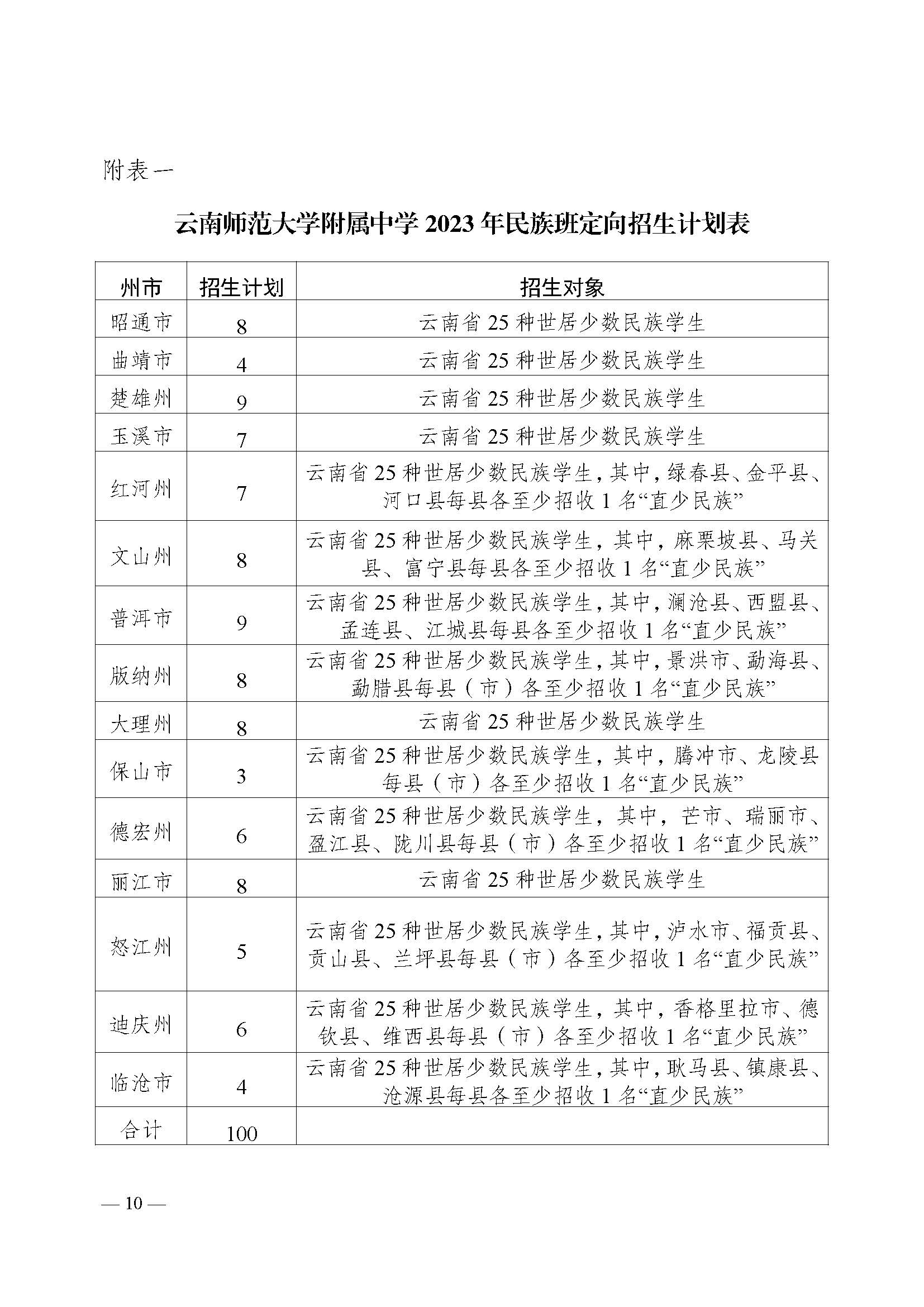 根据《云南省教育厅云南省民族宗教事务委员会关于做好2023 年云南师范大学附属中学、云南民族中学、云南民族大学附属高级中学云南省民族团结进步示范高中班招生工作的通知》文件要求,我校2023 年将面向全省招收少数民族优秀应届初中毕业生。我校招生简章如下(不含昆明):